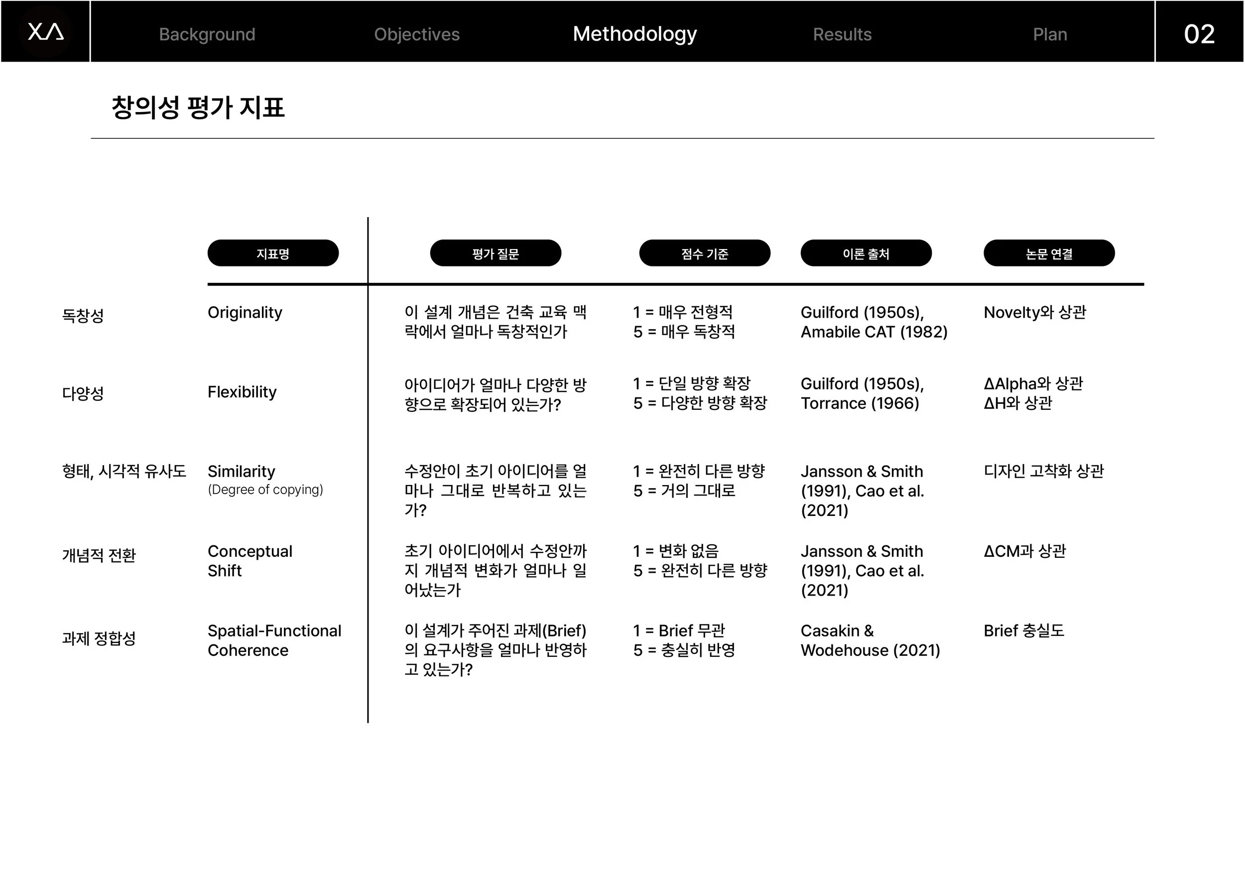 Summary : The framework evaluates design creativity across five dimensions—originality, flexibility, similarity (fixation), conceptual shift, and task coherence—and links these measures to established theories as well as EEG and linkography analyses.