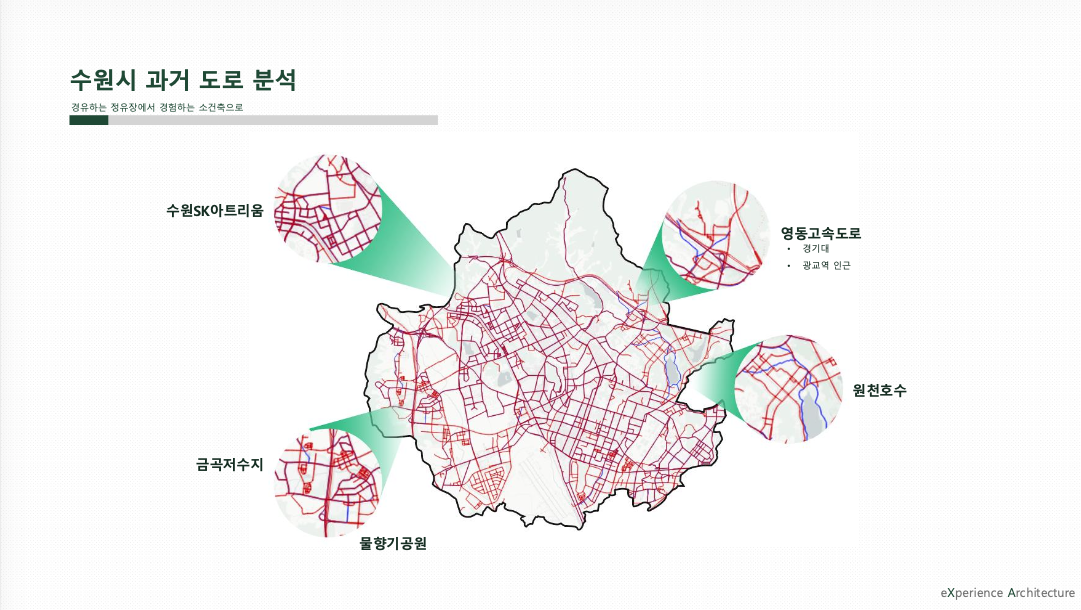 Summary : This presentation analyzed Suwon City's road development industry by year to identify and analyze areas that have changed, and determined whether there were any abandoned bus stops nearby.